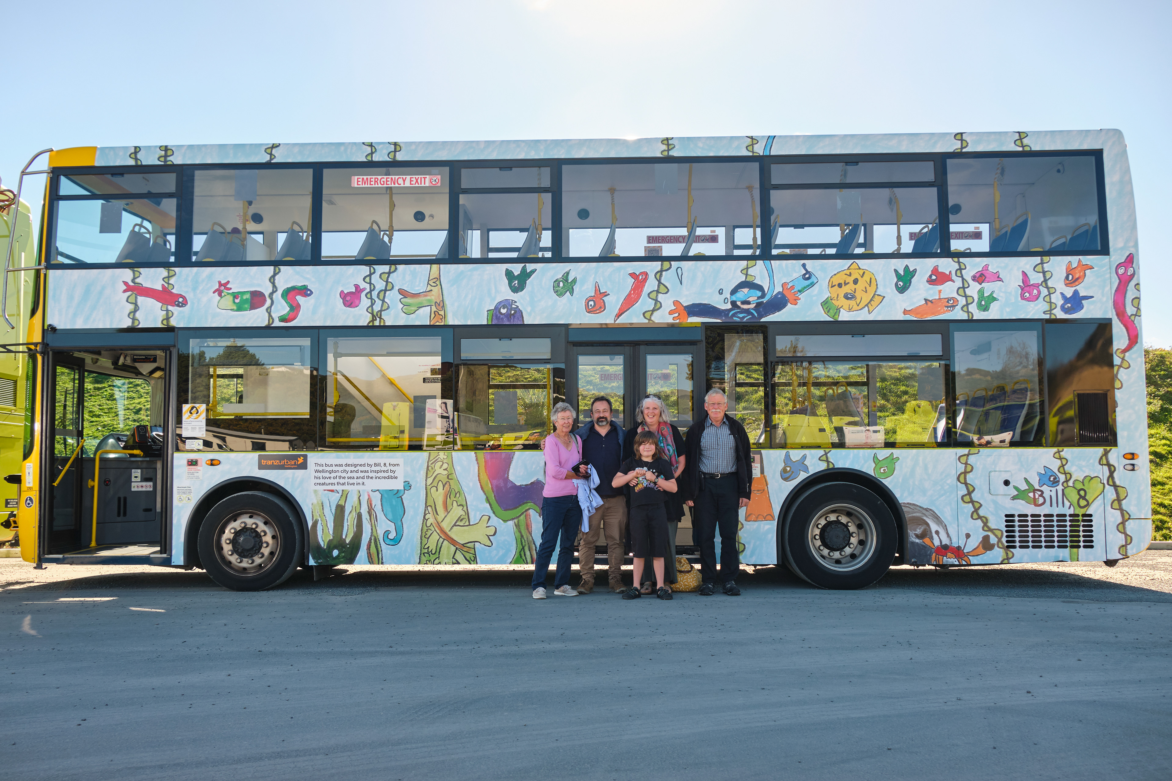As part of Round the Bays 2021, Metlink ran a bus designing competition for children across the region. The Winners, Bill and Ellie, had their designs recreated as faithfully as possible using procreate and unveiled at an event celebrating their work.